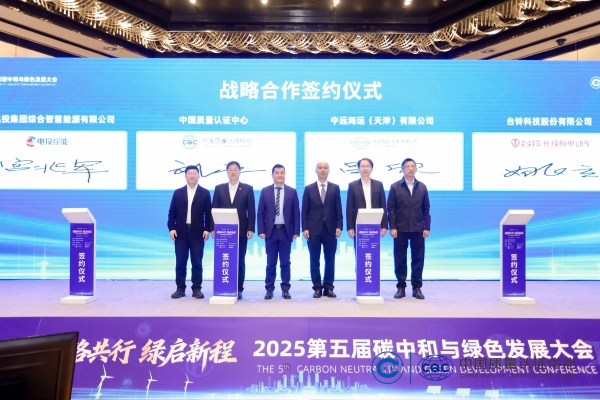 作为中国中检“双碳”领域的年度标杆盛会,此次大会以“碳路共行,绿启新程”为主题,聚焦碳中和目标下的系统化实施路径与产业转型机遇,通过多方对话打通政策落地、推动绿色技术转化、构建创新合作模式。公司与中国质量认证中心以此次签约为起点开展战略合作,不仅是推进绿色低碳数智专业化发展的关键举措,更将为国家“双碳”战略落地提供实践支撑。