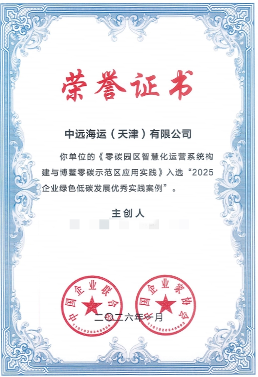 近日,由中国企业联合会组织开展的“2025企业绿色低碳发展优秀实践案例”征集活动正式发布结果。经专家组严格评审,全国共推选出305项具有代表性的优秀实践案例。天津中远海运报送的《零碳园区智慧化运营系统构建与博鳌零碳示范区应用实践》成功入选,荣膺“2025企业绿色低碳发展优秀实践案例”,成为央企在绿色低碳数字化领域的标杆实践之一。