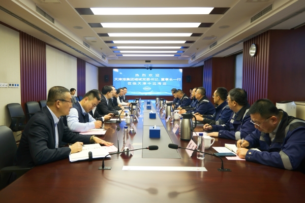 1月12日,天津港集团党委书记、董事长褚斌,副总裁安国利,总经济师陈雪剑一行到访天津中远海运。天津中远海运董事长、党委书记吕欣,董事、总经理、党委副书记沈熙,党委委员、副总经理李岩,天津集运董事长、党委书记桂范峰与来访客人进行了会谈。公司战企部、运营部、低碳公司、大厦公司负责人参加。